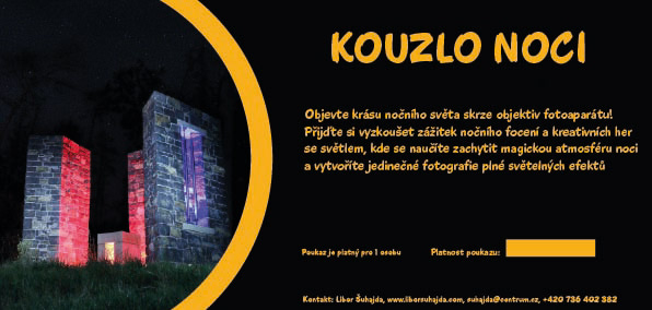 Přijďte si vyzkoušet zážitek nočního focení a kreativních her se světlem, kde se naučíte zachytit magickou atmosféru noci a vytvoříte jedinečné fotografie plné světelných efektů.